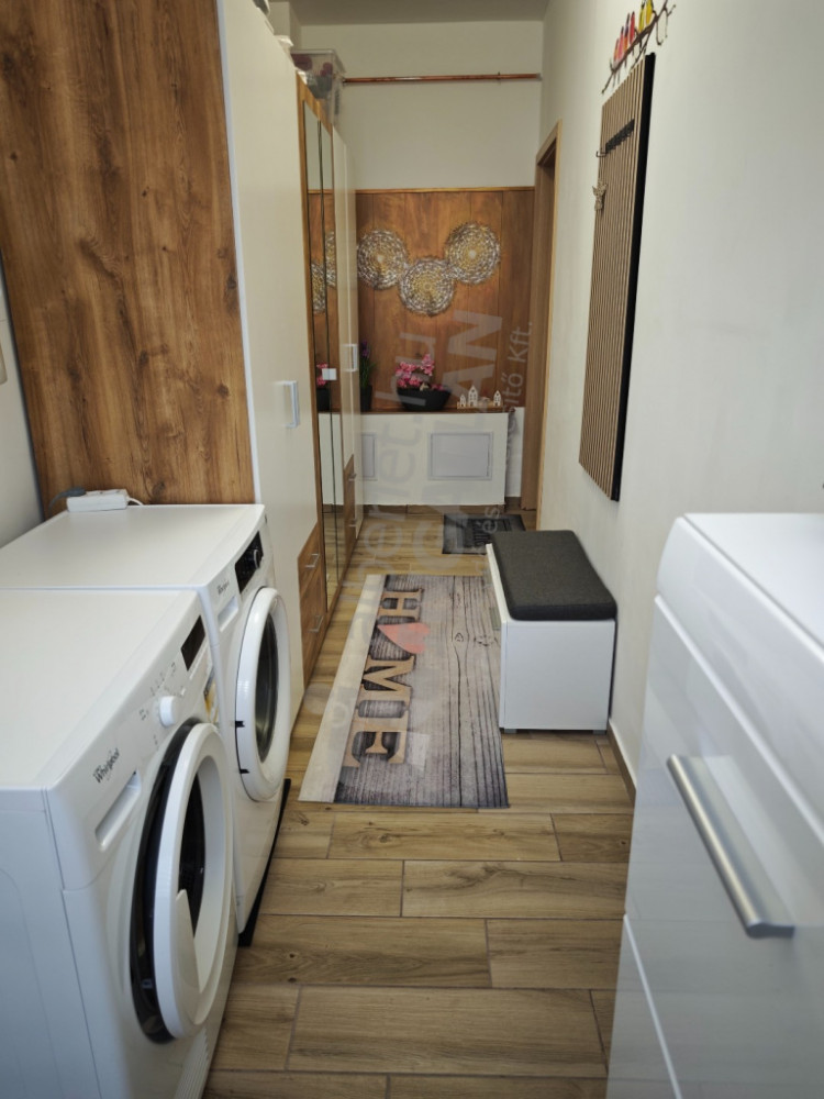 Spacious hall with built-in wardrobe (included in the purchase price) and washing machine and dryer outlets
