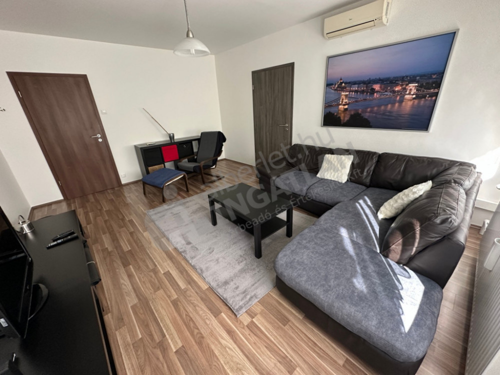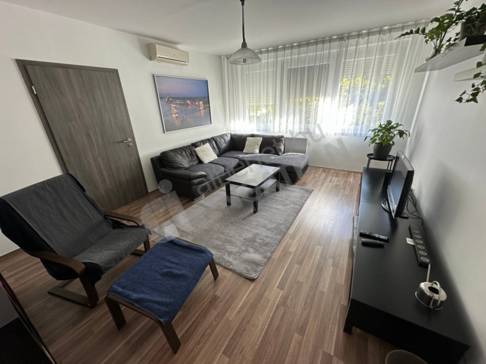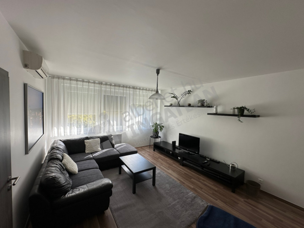 In Kárpát Street, a renovated, two-bedroom, air-conditioned panel apartment is for sale.