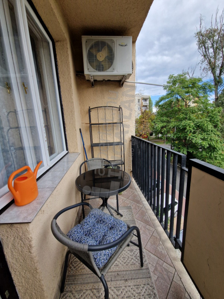 The 6 sqm balcony offers a cozy view of the Újpest Water Tower - an urban panorama, yet in a liveable environment.