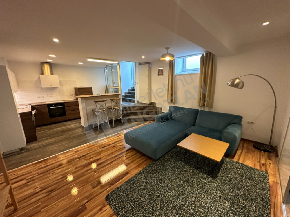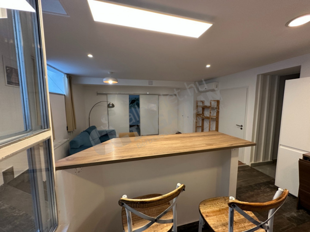 We offer for sale this stylish, 76 sqm, youthful basement apartment with a living room with an American kitchen and 2 separate bedrooms in a quiet, tidy brick building in Budapest.