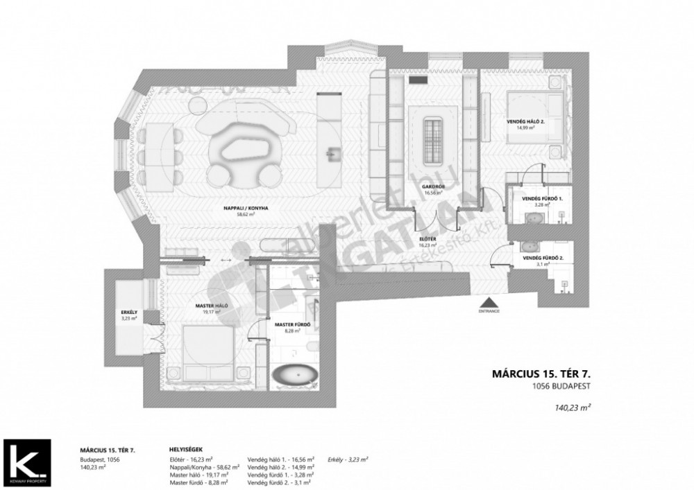 The 140 m2, second floor apartment on Március 15 Square is located in Kenway Property