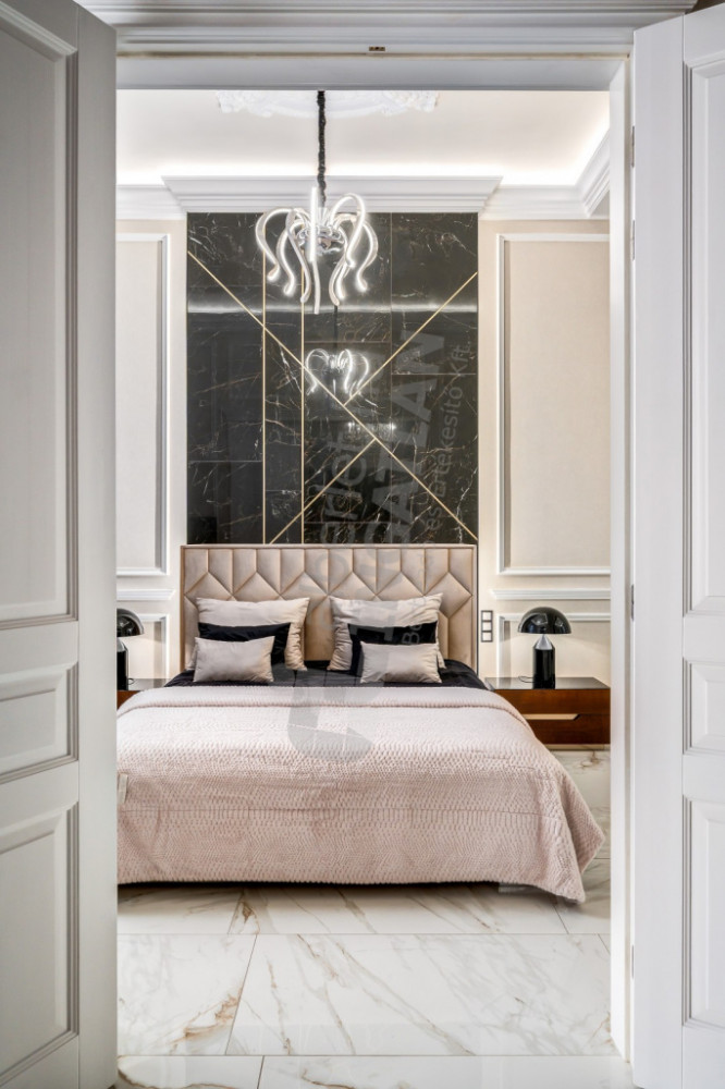 When designing the bright apartment with a unique atmosphere, the interior designers aimed for sustainability and quality, as a result of which all wall surfaces and all wallpapers are washable. The entire lighting of the apartment is provided by LED light sources.
