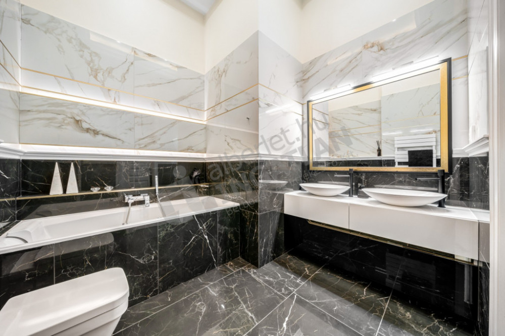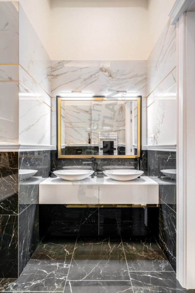 High-quality tiles and sanitary ware (Grohe, Teka) were selected for the bathrooms, and the mirrors were also made using handmade techniques based on unique designs.