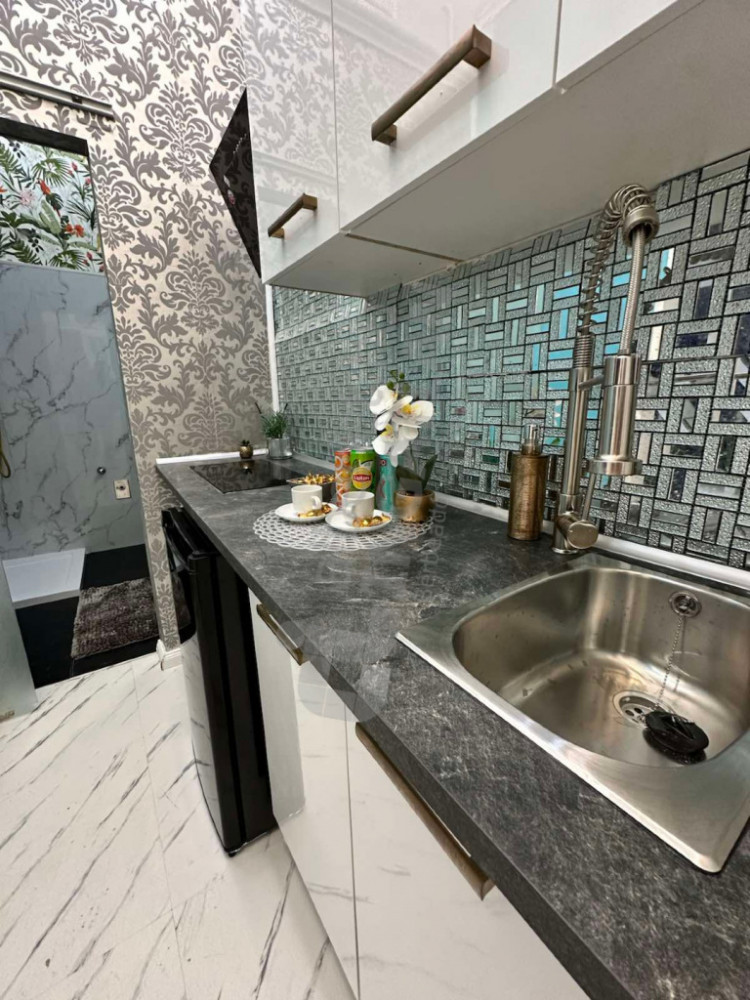 The apartment has a mechanized kitchen, and both functionality and aesthetics played a prominent role during the renovation. Thanks to its courtyard location, it is located in a quiet, yet absolutely downtown environment.