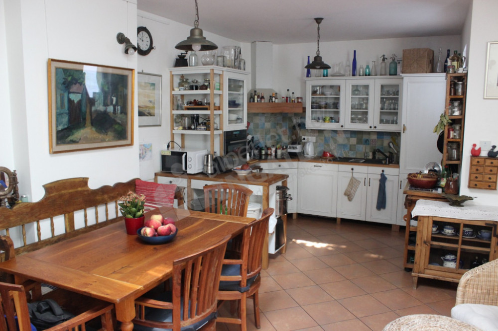 The conservatory can be fully opened, so the covered and uncovered terrace form a single, unified outdoor living space, which is a real rarity above the city center. Above the living room, an openable ceiling window has been installed, which floods the space with natural light. The kitchen furniture is based on the unique designs of a designer team, made of virgin-free, real wood, which is both elegant and timeless.