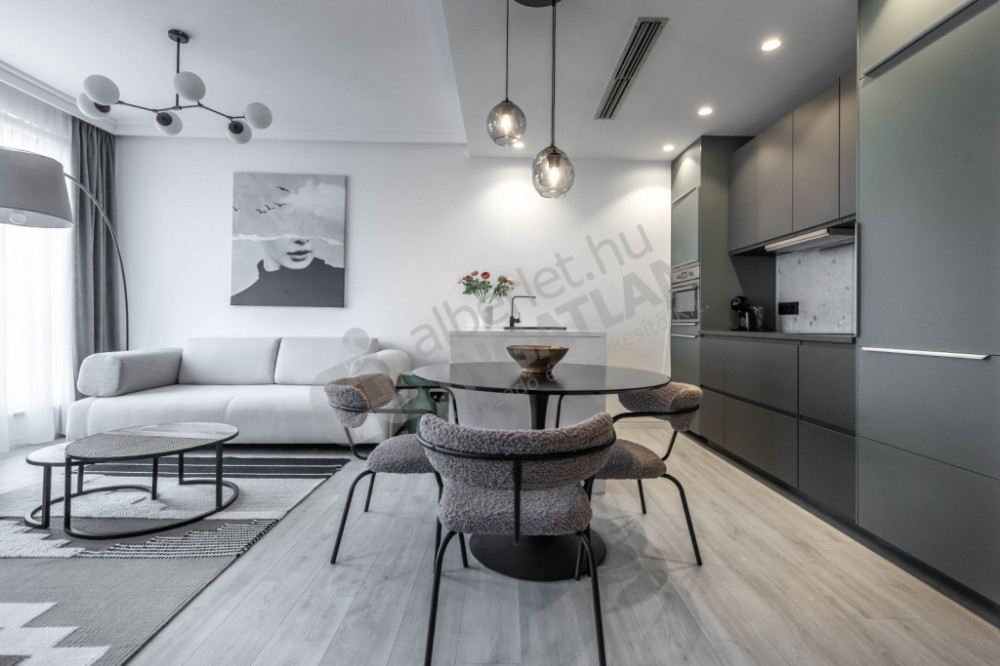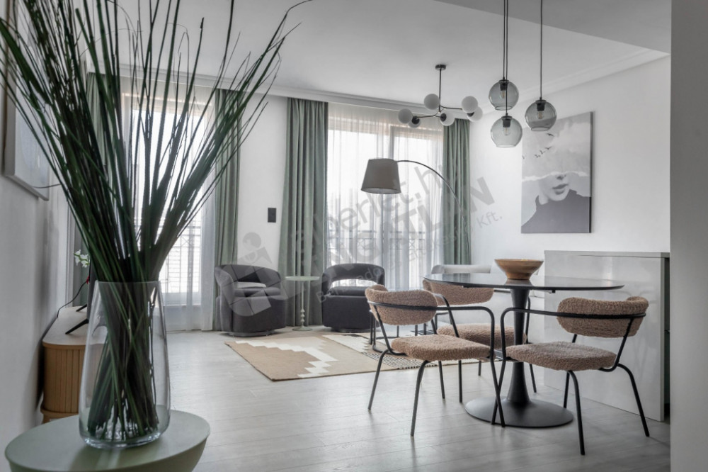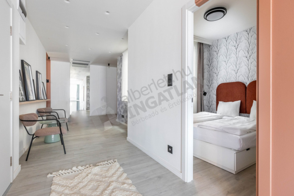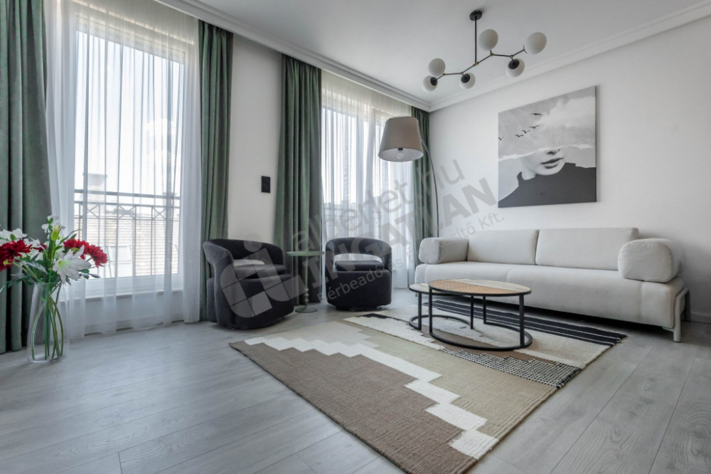 In Akácfa Street, steps from Liszt Ferenc Square, a newly built, attic-built, two-bedroom, two-bathroom apartment is for sale.
