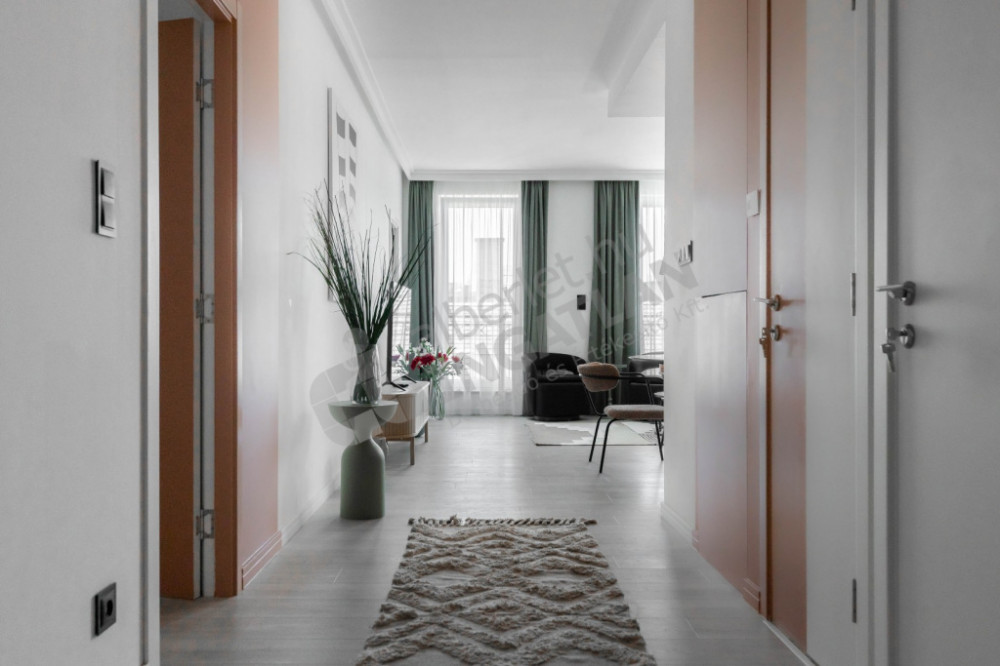 The apartment consists of a living room with a mechanized American kitchen and 2 separate bedrooms.