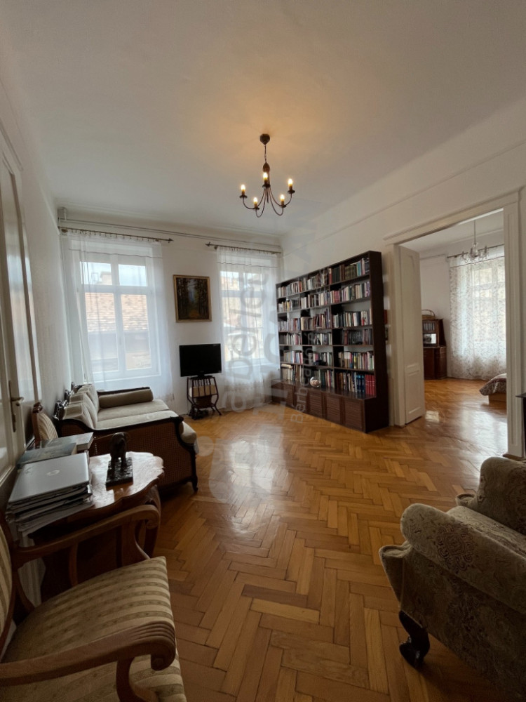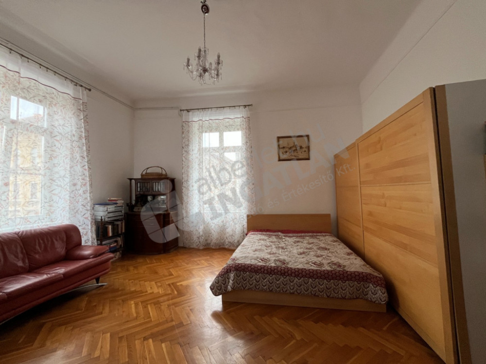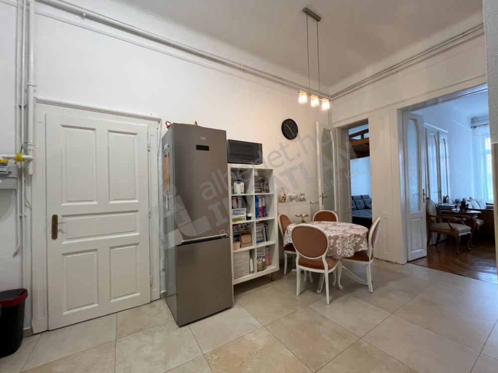In a popular area of District VII, on the second floor of a well-maintained, 22-apartment condominium, we offer for sale a 103 m², 4-room upper-middle class apartment. The property overlooks two streets, is extremely bright, with windows and natural ventilation in all rooms. The apartment's 3.65-metre ceiling height provides an elegant sense of space, while there is no unused space thanks to the practical floor plan.