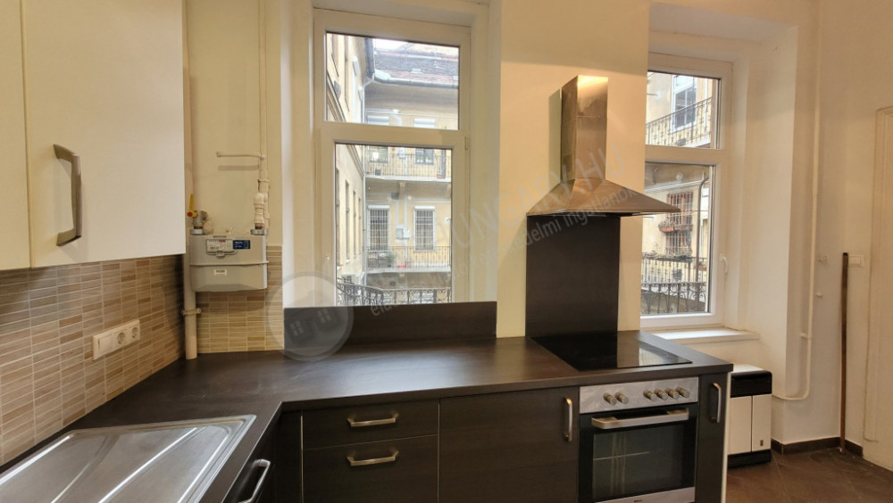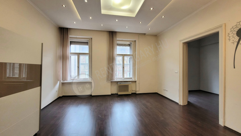 A two-room, 59 m² apartment is for sale in the 7th district, close to Erzsébet Boulevard. The property has undergone both technical and aesthetic renovation. The rooms face the street, while the kitchen windows overlook the inner courtyard. Due to its location on the second floor, the apartment is not noisy.
