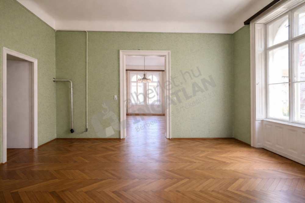 In Budapest, in the 8th district, in the Palace District, a few steps from Corvin Plaza, a 3rd floor, 126 m2, 3-room apartment is for rent.