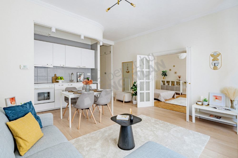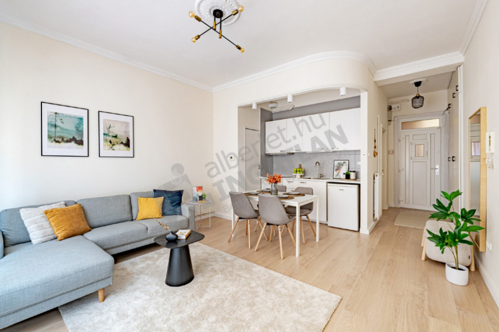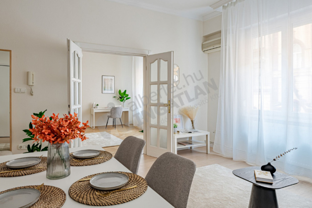 A lakás teljeskörű felújításon esett át – modern burkolatok, stílusos konyha és fürdő, új vagy felújított nyílászárók, minden részletében friss, lendületes hangulatot áraszt. A két szoba ideális elrendezésű: amerikai konyhás nappali és tágas hálószoba biztosítja a kényelmet és a funkcionális elosztást. A lakás azonnal költözhető, TEHERMENTES.