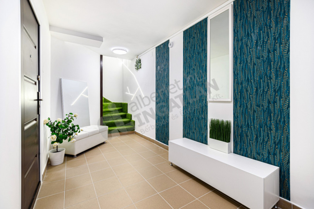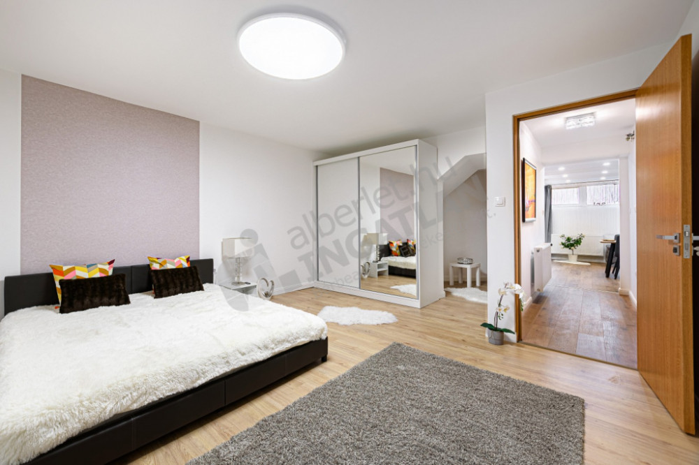 Parkolás az udvaron lehetséges. További extrák: elektromos kapu, mozgásérzékelős világítás, wifis kamerarendszer.