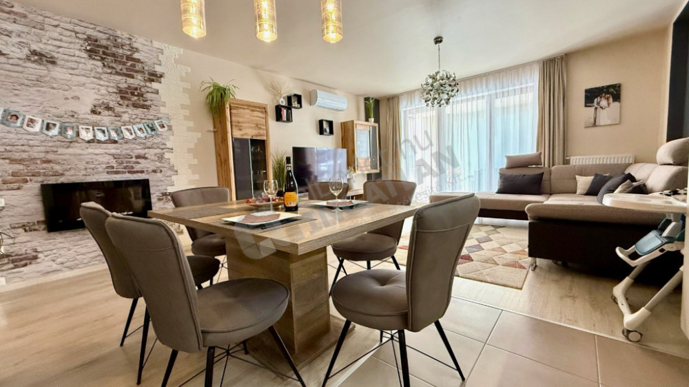 A délnyugati tájolású ingatlan tágas, amerikai konyhás nappalival rendelkezik, nagy üvegfelületekkel. A konyha minőségi, beépített TEKA gépekkel felszerelt.