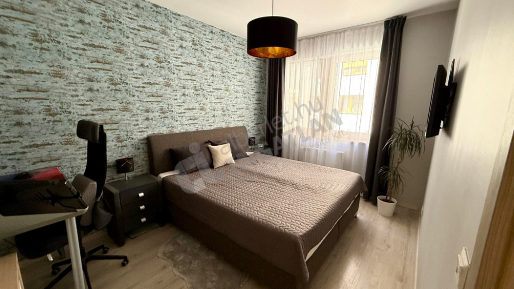 A lakásban két külön nyíló szoba, egy kádas fürdőszoba és egy külön WC található. A fűtést házközponti rendszer biztosítja egyedi mérővel, a hűtésről két Wi-Fi-ről vezérelhető klíma gondoskodik. Az ablakokon szúnyogháló van, a teraszajtón pliszé háló.