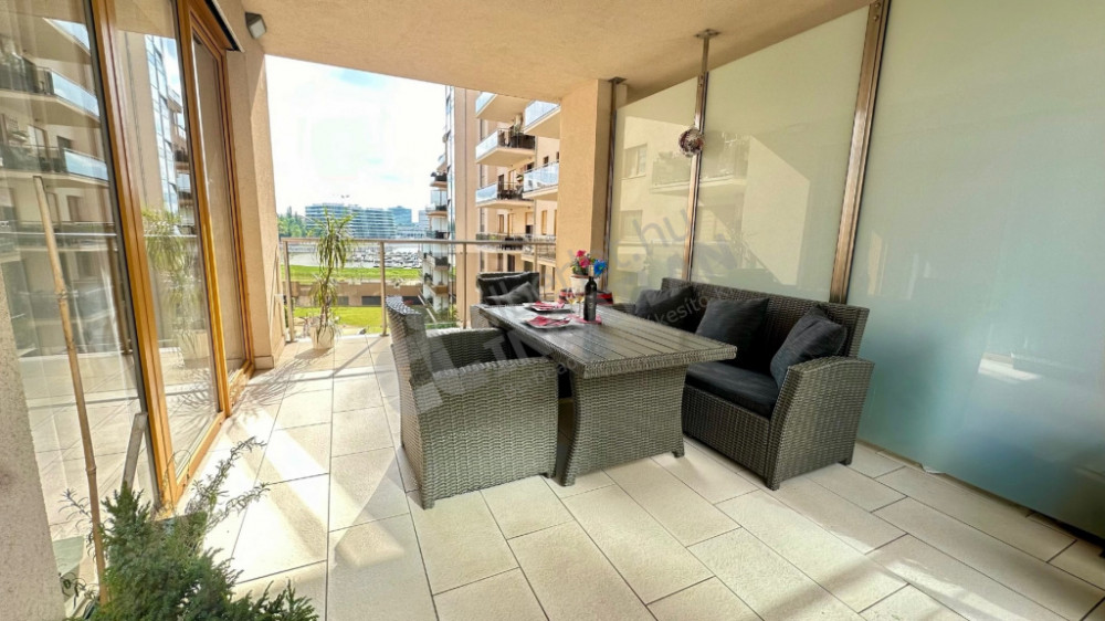 For sale is a 72 m² sunny apartment on the Marina beach in Úszódaru Street, which has an 18 m² terrace with panoramic views of FOKA Bay.