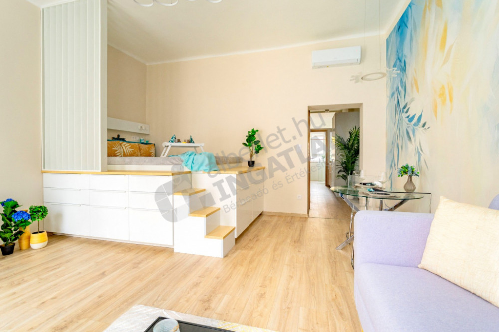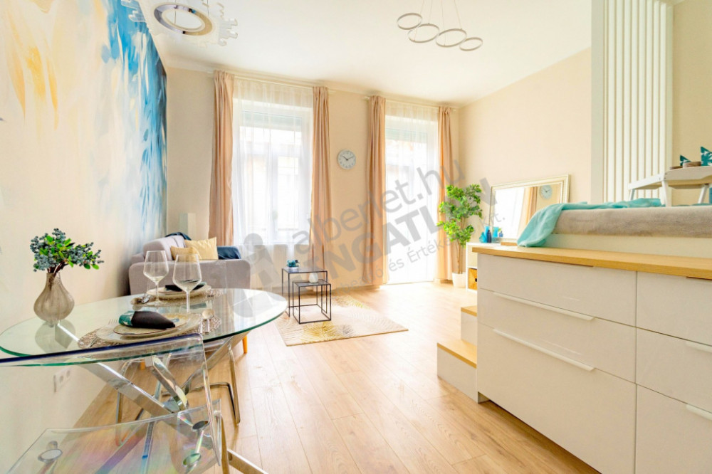 A fully renovated, 38 m² + 3 m² second-floor studio apartment with balcony is for sale in District VIII, in Kisfaludy Street, just a few minutes' walk from Corvin Plaza.