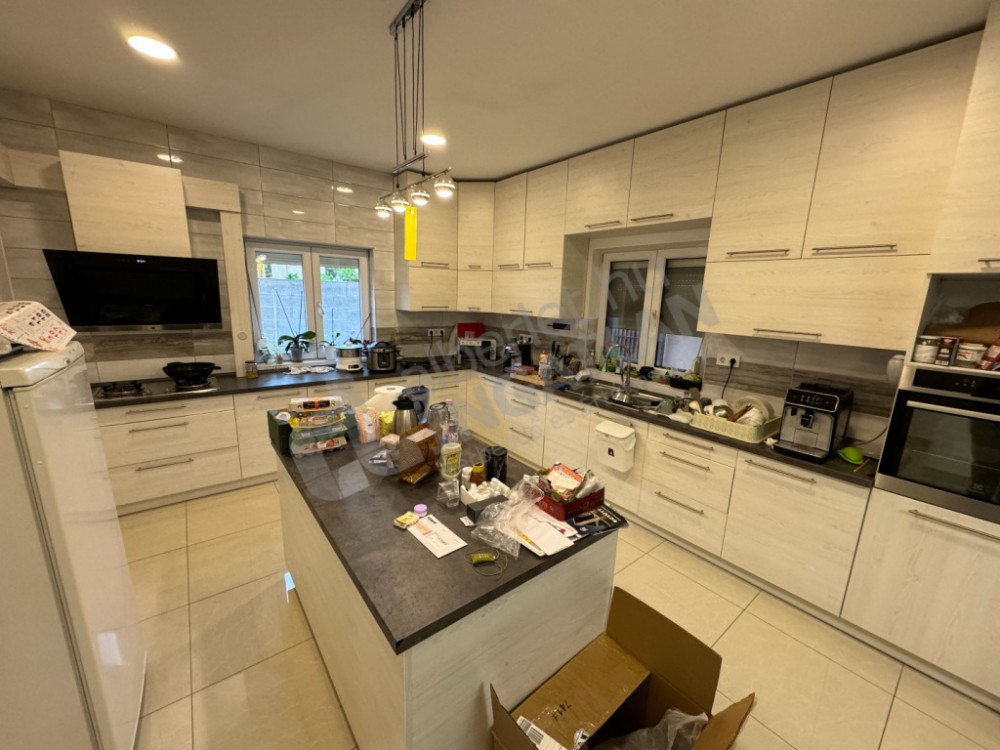 A nappali különösen tágas, mintegy 55 nm, ami sok lehetőséget kínál az együttlétekhez és kikapcsolódáshoz. A konyha is bőséges helyet biztosít, körülbelül 40 nm-es területen, így könnyedén főzhet és étkezhet a család.