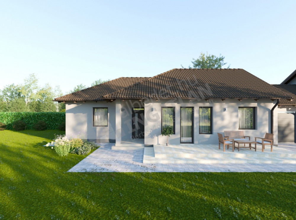• Kert alap tereprendezéssel, térkövezett járdákkal