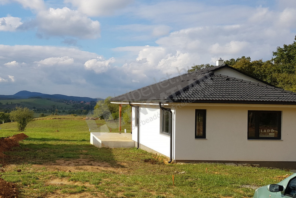 - 14 cm-es hőszigetelő vakolati rendszerrel kiegészítve, fehér színű dörzsölt nemes vakolattal