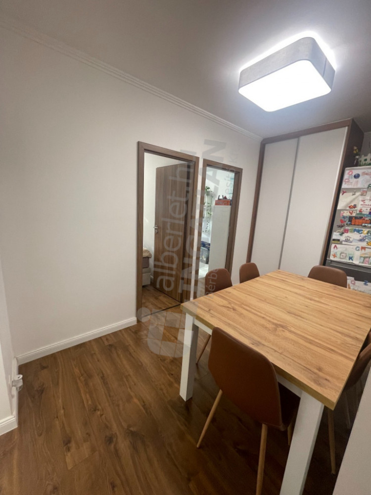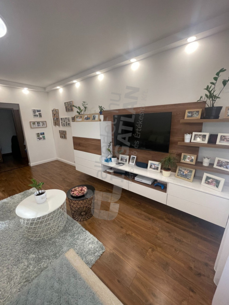 Beépített bútorokkal felszerelt (konyhabútor, gardróbok, cipősszekrény, médiafal, ruhafogas)
