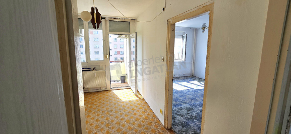 kívülről szigetelt házban, 61 m²-es, erkélyes, 2,5 szobás, felújítandó lakás az 5. emeleten, liftes társasházban.