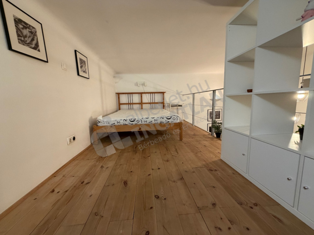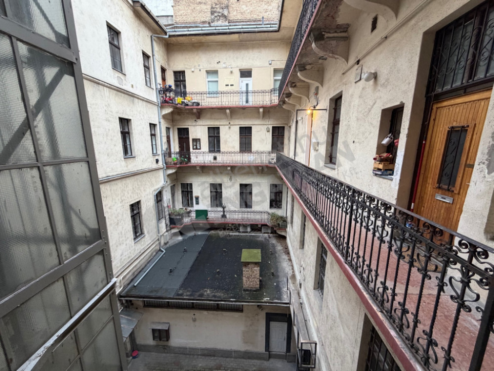 A lakás udvari fekvésű, északi tájolású, ennek köszönhetően rendkívül csendes, a belmagasság pedig 3,8 méter, ami ideálissá tette a galéria kialakítását.
