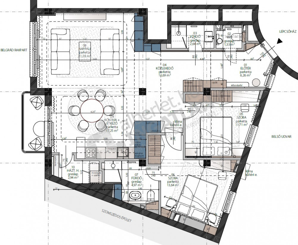 Belgrád rakpart, eladó 95 m2 -es tégla építésű lakás