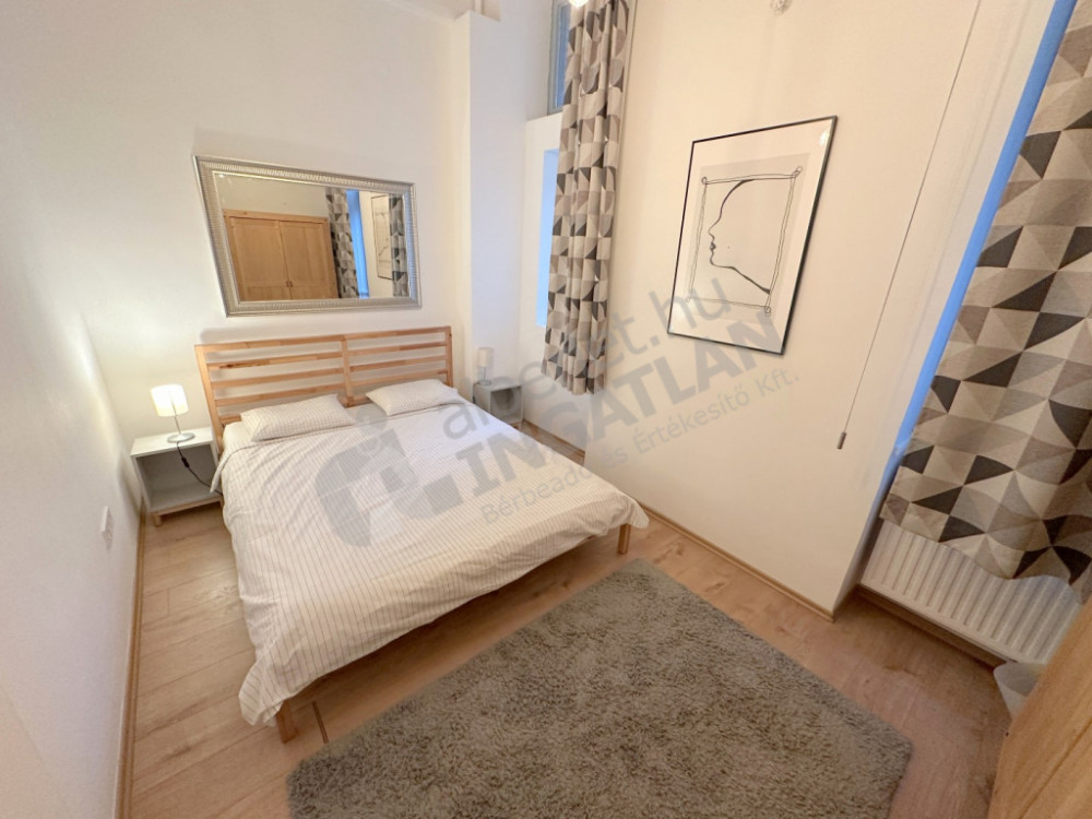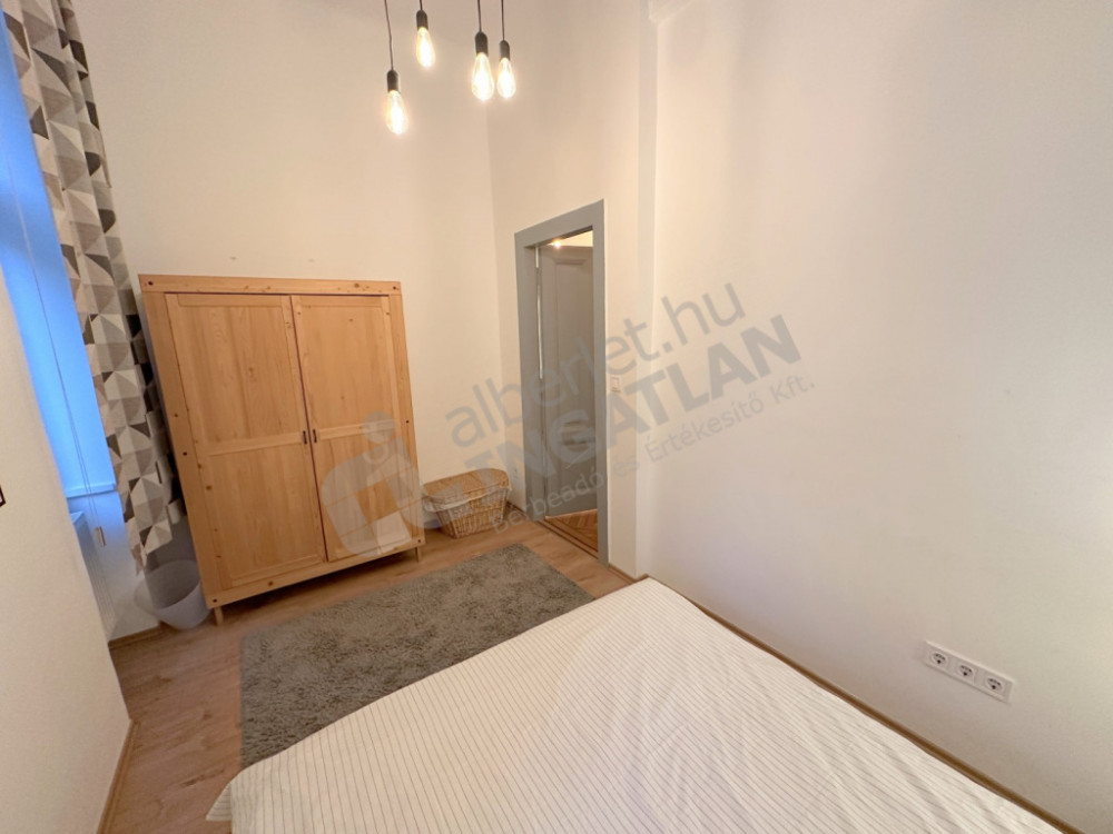 Tágas előtér, ahonnan nyílik az összes helyiség: Amerikai konyhás, tágas nappali, egy nagyobb, egy kisebb hálószoba, fürdőszoba, külön WC.