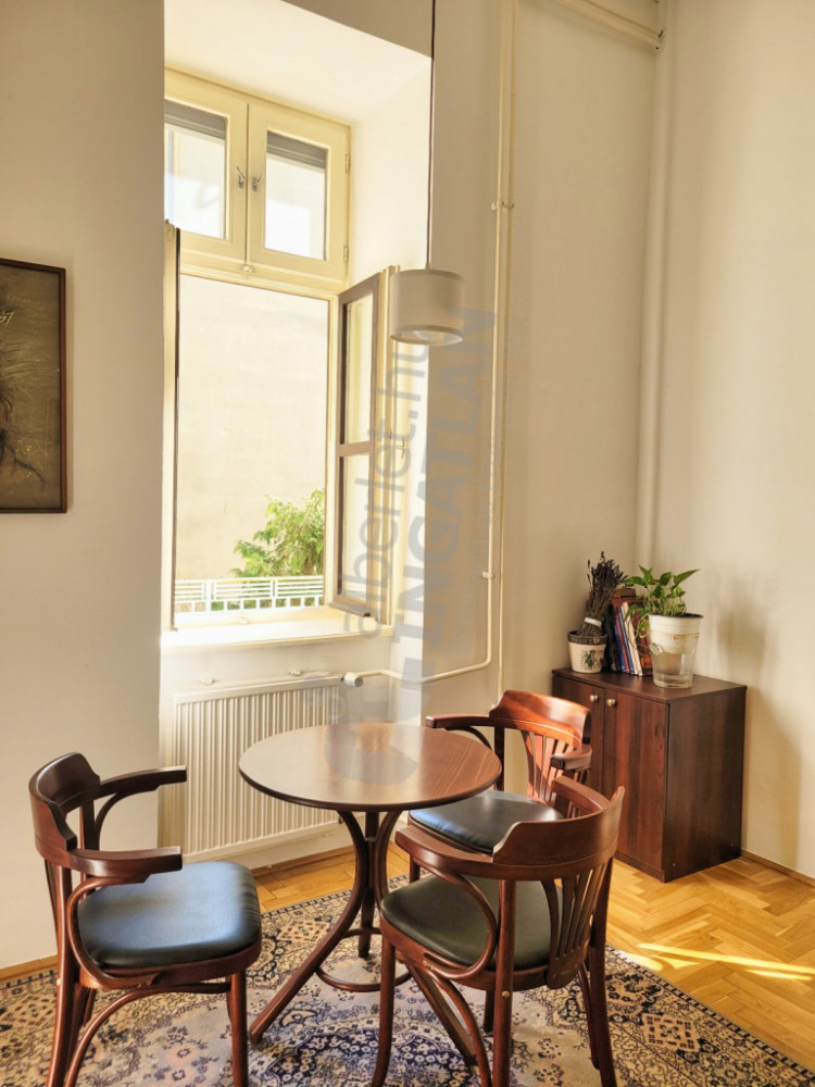 A VI. kerület szívében, a belvárosi élet központjában, mégis nyugodt, parkosított belső udvarra néző első emeleti lakás eladó. Az ingatlan összterülete 120 négyzetméter, és jelenleg két különálló egységként van kialakítva.