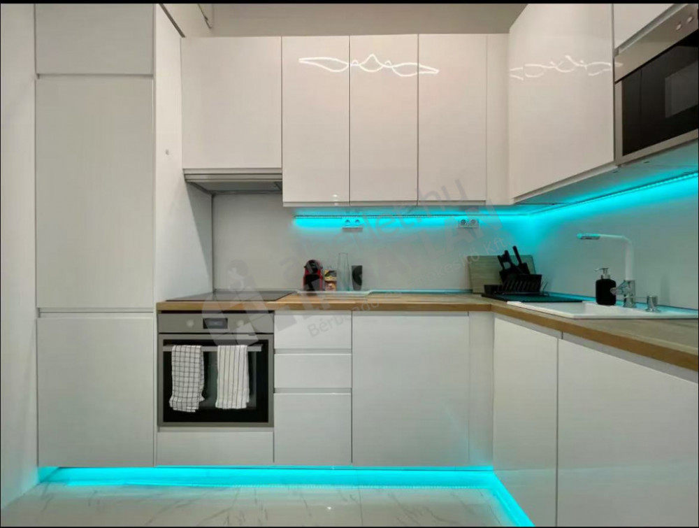 A lakás villanyfűtéses, alacsony fenntartású, modern és világos belső terekkel.