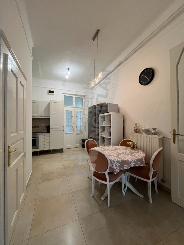 A VII. kerület kedvelt részén, egy rendezett, 22 lakásos társasház második emeletén kínálunk eladásra egy 103 m²-es, 4 szobás nagypolgári lakást. Az ingatlan két utcára néző, rendkívül világos, minden helyiségében ablak és természetes szellőzés biztosított. A lakás 3,65 méteres belmagassága elegáns térérzetet nyújt, miközben a praktikus alaprajznak köszönhetően nincs kihasználatlan terület.