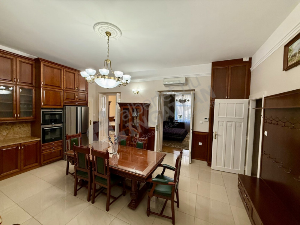 A belső tereket minőségi, német gyártmányú bútorok teszik egyedivé, harmonikus, nagypolgári hangulatot teremtve.